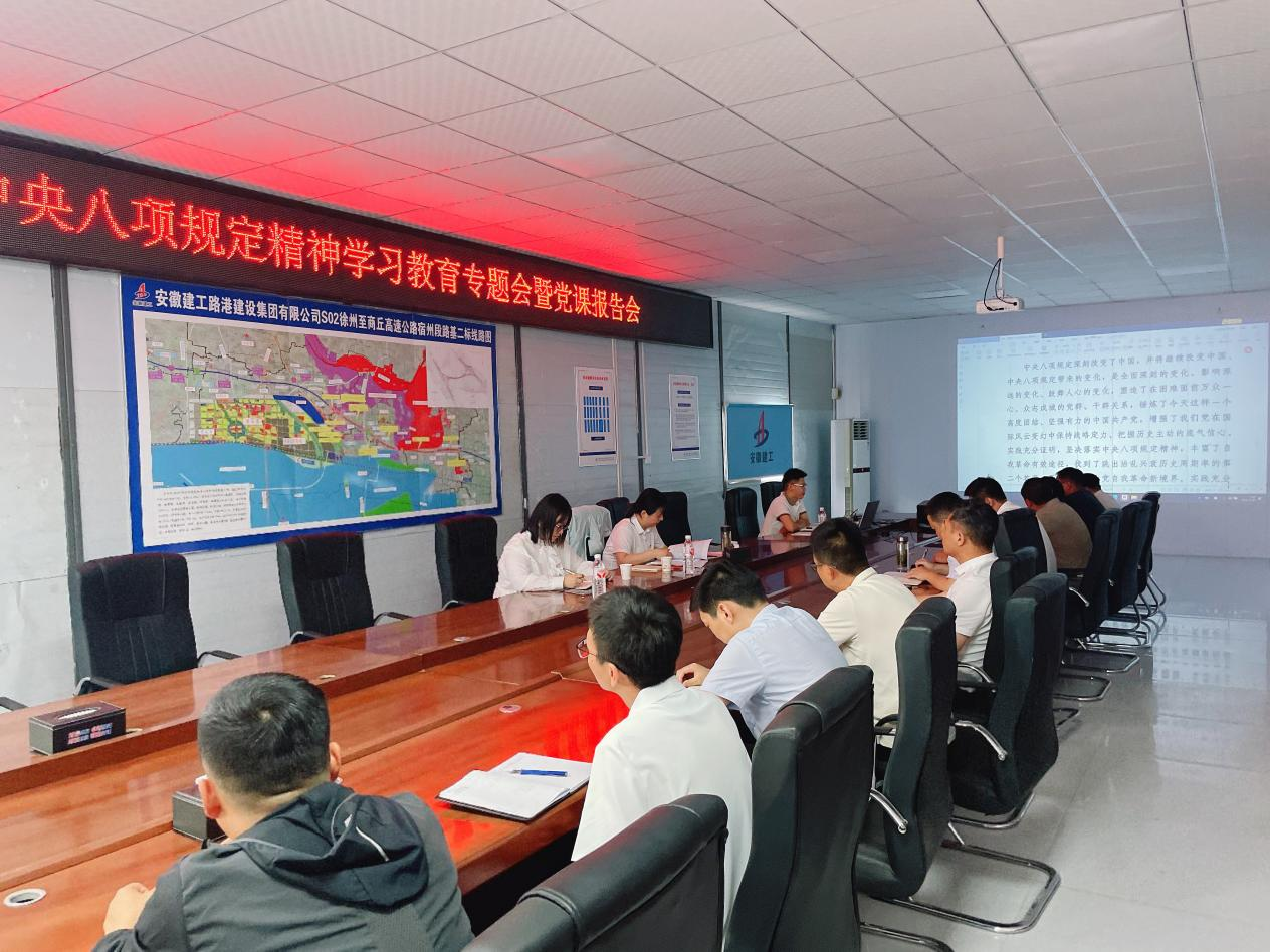 近日,宿州投發(fā)機(jī)關(guān)黨支部書(shū)記徐晶晶一行先后赴S02徐商高速路基二標(biāo)項(xiàng)目部、S02徐商高速路基一標(biāo)二分部項(xiàng)目部,開(kāi)展深入貫徹中央八項(xiàng)規(guī)定精神學(xué)習(xí)教育專(zhuān)題會(huì)暨黨課報(bào)告會(huì)。機(jī)關(guān)黨支部書(shū)記徐晶晶講授黨課,黨支部委員陸冬領(lǐng)學(xué)相關(guān)內(nèi)容,項(xiàng)目部全體職工參加會(huì)議。